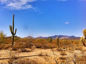 We arrived in Phoenix early enough to drive out to Organ Pipe Cactus National Monument. It’s about a two hour drive from the Phoenix airport – through the desert. We watched dust storms in the 100 degree heat while we tested the air conditioning in our rental car. We drove through the towns of Ajo and Why before arriving at the entrance to the park. Since the park shares its border with Mexico, we saw way more border patrol agents then NPS rangers. There were also lots of warnings about the danger in the park due to illegal immigration and drug trafficking. That being said, the most danger we encountered was when I was stung/bitten by the largest ant I have ever seen. My hand was on fire (pun intended) for over 24 hours! Apparently those little critters are poisonous. Besides that adventure, we spent some time in the visitors center, getting our passport stamp and reading information about the cacti in the park. The visitor center is named for Kris Eggle, who was killed while working at Organ Pipe Cactus National Monument. He was a ranger and a victim of the drug border violence. A terrible tragedy, the park service has done a nice job paying homage to him. We spent some time driving through the park, seeing the 28 different varieties of cacti. The cactus for which the park is named, is rarely found in the U.S. – except in this area of the Sonoran Desert.