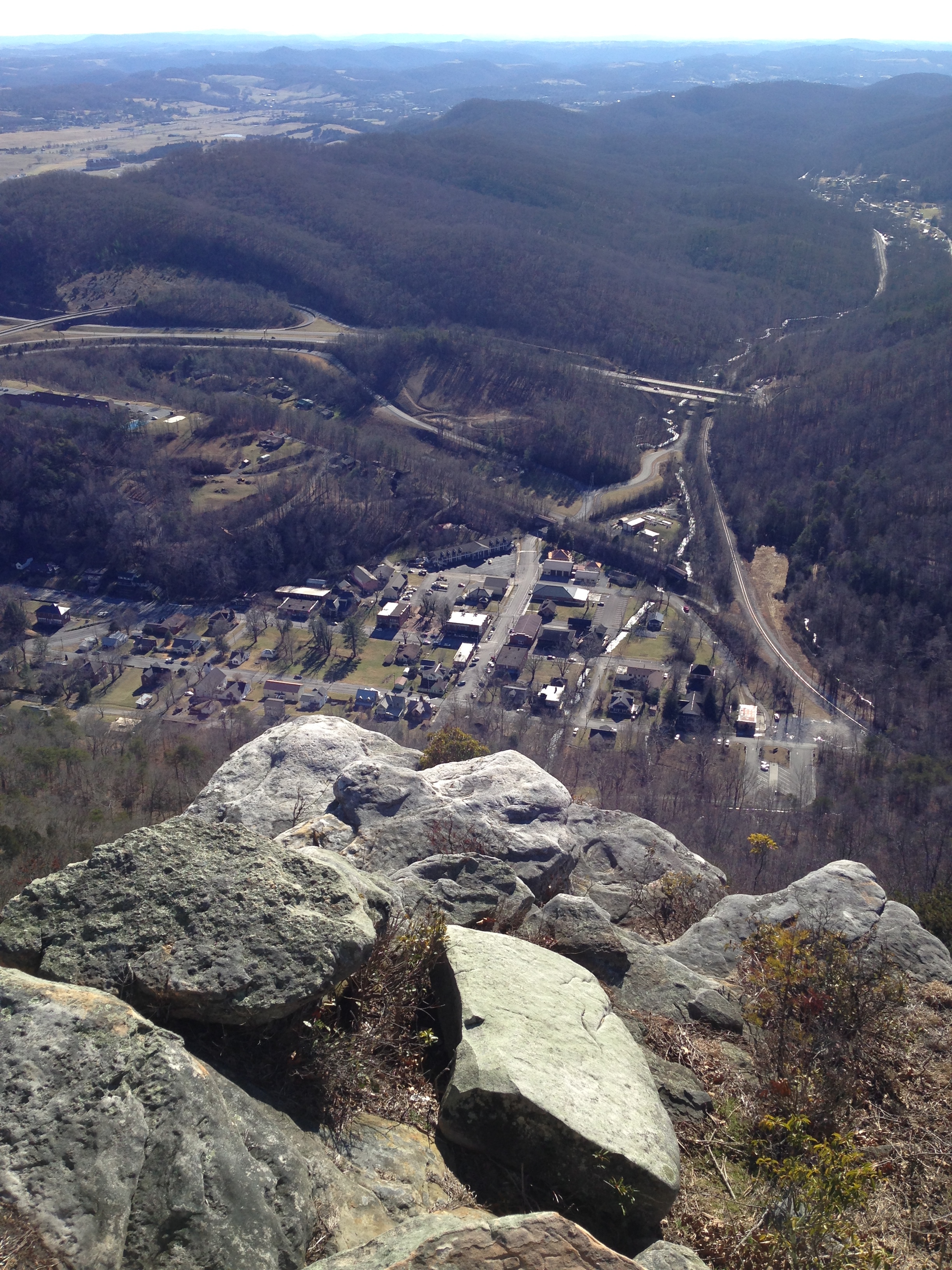 After returning from our winter vacation, and spending New Years in bed ill, we managed to squeeze in one more park site in honor of my birthday before Anthony departed for what is proving to be an incredibly busy spring with work. We drove to Cumberland Gap National Historical Park on a Sunday. It was chilly, but not too cold, so we were able to walk around a little at the site. There are some extensive hiking trails as well. Cumberland Gap commemorates the early European settlers who first traveled through this gap in the Appalachian Mountains in order to settle the west. There are beautiful views from Pinnacle Overlook, though Daniel Boone did not look into any civilization like we did – he saw pure, undeveloped wilderness. We also were able to check out some earthworks, from the strategic forts built during the Civil War. Cumberland Gap changed hands many times during the war, but no battles were fought here.
