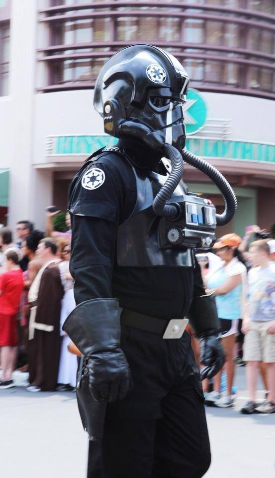 The following day, Sunday, was Anthony’s day to march in the parade. I dropped him off early to meet up with the other 501st members, and then sat and waited for the parade. I had to get a good spot in order to take photos. At least I had friends to chat with while waiting in the sun. Finally, the parade began. Anthony dresses as a Tie Fighter, and there were several others lined up with him to march. Thousands of people watched and cheered them on as they walked down the main street at Hollywood Studios.