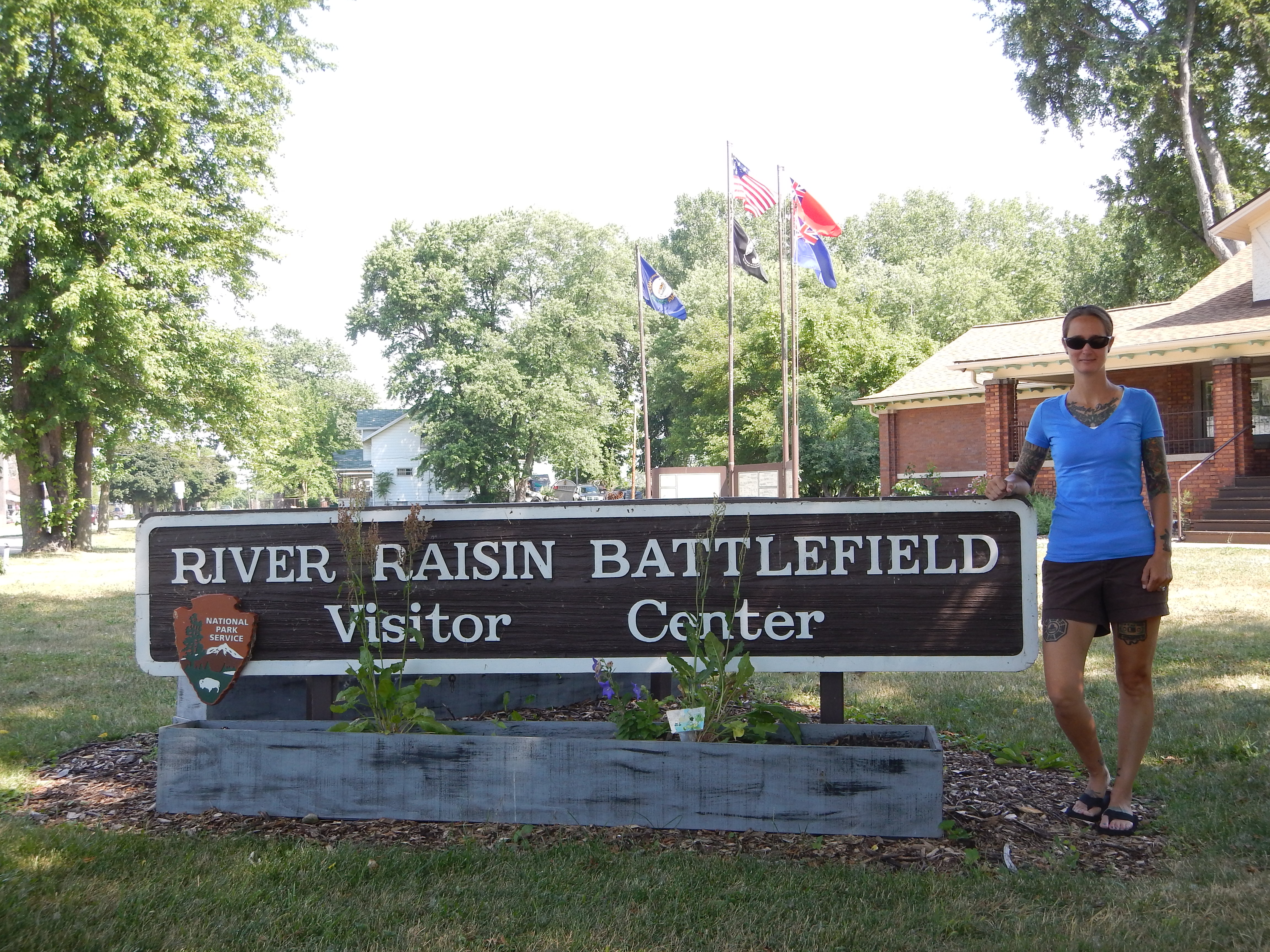 The next morning, still kind of full, we backtracked south to visit River Raisin National Battlefield Park. The site is still being developed, since it was only determined to be an NPS site in 2009. So far there is an informative visitor center and a short walk to the battlefield. There are also some monuments in the park. Until recently, the battlefield was covered by an abandoned paper factory. Through the efforts of citizens, the city of Monroe, and the state, now River Raisin (Remember the Raisin!) will be protected. A war of 1812 site, the rangers will be quick to point out, River Raisin demonstrates a time when we were battling against Canada through the British and their Indian allies. Not only were the Americans ultimately beaten at River Raisin, there were such casualties and fear of retribution, that the dead soldiers remained unburied for months after the battle. An horrific image to say the least. So many of these historical sites we visit offer a sobering view of American history, and I feel (as does the National Park Service) that it is immeasurably important to remember and preserve these moments in history.