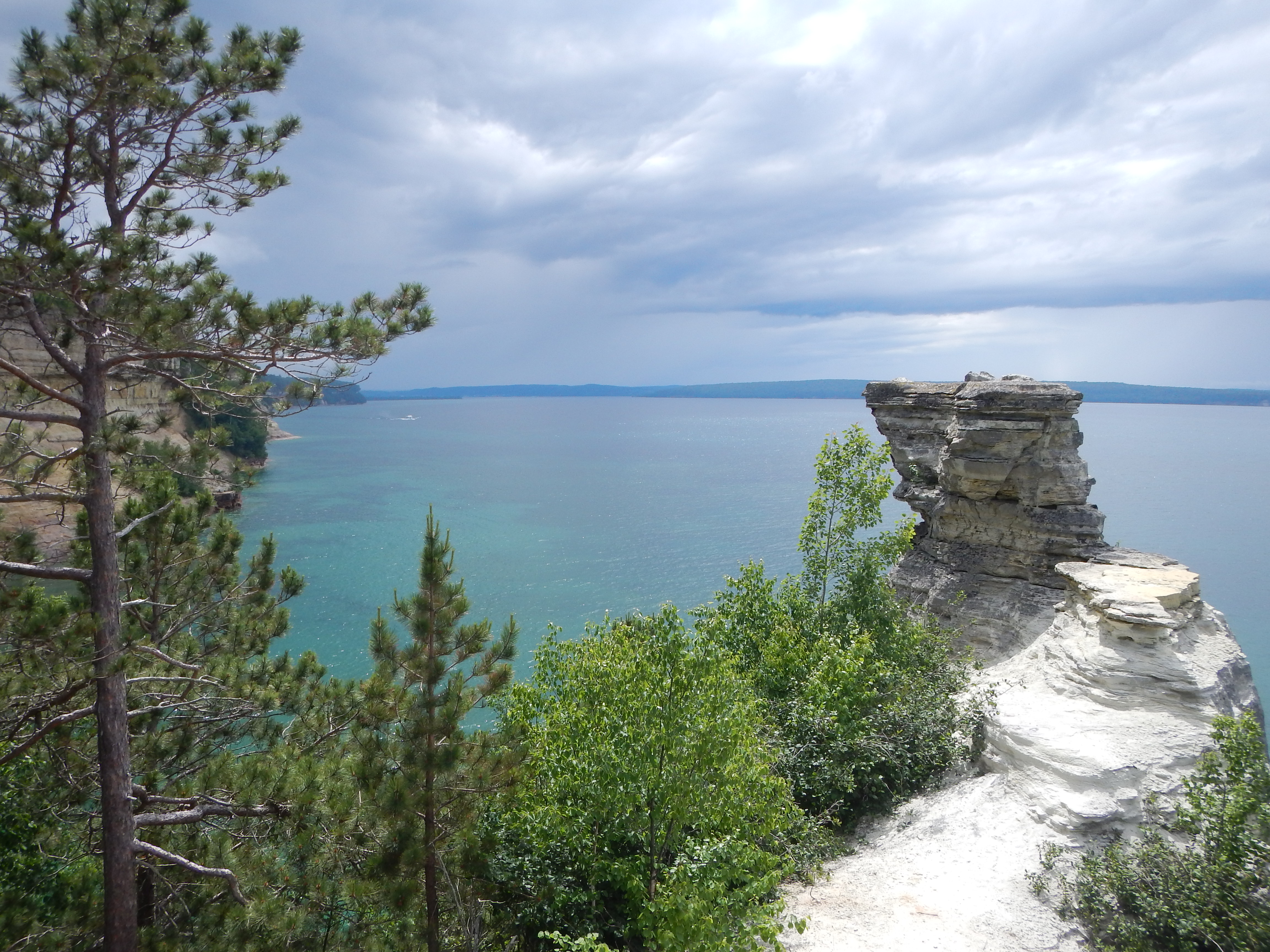 After stopping for some Thai food in Petoskey, we stayed the night in Mackinaw City, next to the Mackinac Bridge, which took us over to the Upper Peninsula the next morning. While driving the back roads of the U.P. we continuously saw signs for pasties and wild rice. The scenery was stunning, and the uncongested roads were a treat. Our next NPS stop was Pictured Rocks National Lakeshore on Lake Superior. We first stopped in the Grand Sable Visitor Center for information, and our cancellation stamps. As we chatted with the ranger, she told us there was no longer a ranger at the Lightkeepers House Museum. We mentioned we were hoping to go there in order to get the lighthouse stamp, and the ranger asked if we’d like her to mail it to us! So we left our address and when we arrived home, there was our lighthouse stamp with a great note from the ranger. So sweet of her! We set up camp that night in the Hurricane River Campground, which was not even half full. In fact, when we set up our tent, there was no one else on our loop! We were introduced to the frenetic and persistent mosquitos of the U.P. They do not quit, and even a layer of Deet does not always keep them away. Temperatures dropped into the 40’s the night, and didn’t rise much the next day – and still the mosquitos were attacking.